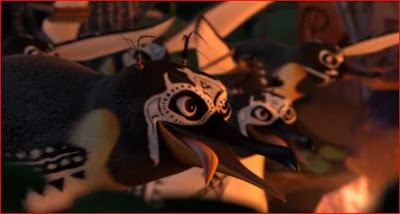 Estos pequeños me recuerdan a los miniperezosos de Ice Age, con sus cantos y su forma de actuar todos a una. Ambos, miniperezosos y minipingüinos, en sus respectivas películas al principio secuestran a uno de los personajes y en ambas películas después se convierten en sirvientes o adoradores del secuestrado (Sid y Chicken Joe).